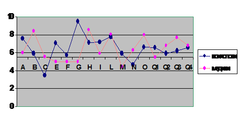 результатов по тесту Р.Кеттелла