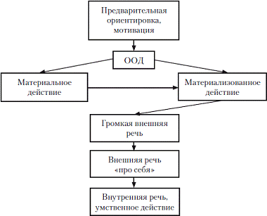 Определяя условия, обеспечивающие перенесение внешнего действия во внутренний план, он выделяет ряд этапов.