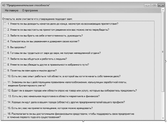 }void предпринимательские Способности Tool Strip MenuItem_Click (object sender, EventArgs e)