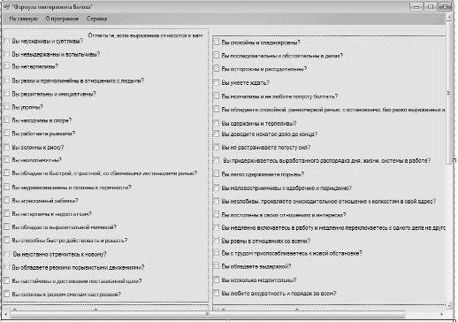 На рис. 3 представлен тест «Формула темперамента А. Белова», пройдя который пользователь узнает о своем темпераменте. Тест состоит из 80 вопросов.