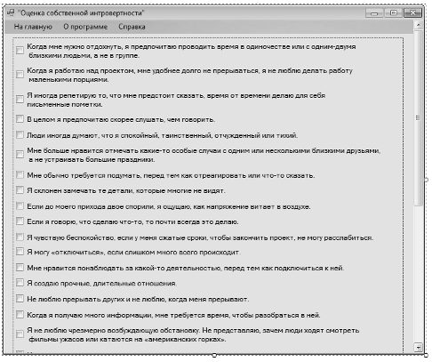 }void оценкаСобственнойИнтровертностиToolStripMenuItem_Click(object sender, EventArgs e)