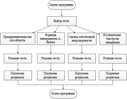 В тестере предоставлены на выбор 4 теста: «Предпринимательские способности», «Формула темперамента А. Белова», «Оценка собственной интровертности», «Исследование быстроты мышления».
