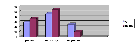 Контрольный срез показал, что у детей улучшился уровень самоконтроля. 36% учащихся не допустили ошибок, 54% учащихся допустили 1-2 ошибки, смогли найти и правильно исправить свои ошибки, 10% допустили 3-5 ошибок, в процессе деятельности нашли и исправили только часть ошибок. Сравнительные результаты представлены в таблице 17 на рисунке 16.