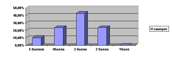 Методика на определение уровня сформированности саморегуляции у младших школьников показала, что у большинства учащихся - саморегуляция сформирована на среднем уровне и соответствует 3 баллам, низкий уровень – присущ 16 ученикам, а высокий проявился только у 7.