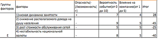 среды влияет на сферу услуг сотовой связи. Низкая динамика занятости
