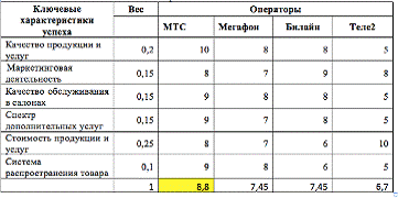 внутренней среды компании ПАО «ВымпелКом» на рынке сотовой связи.