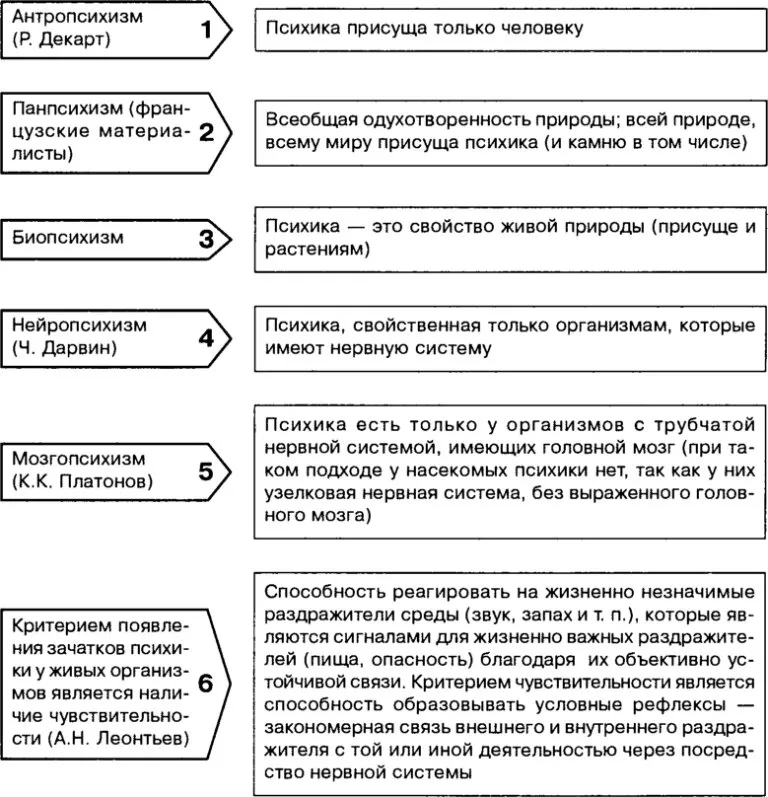 10. Подходы к пониманию психики (панпсихизм, биопсихизм, нейропсихизм, мозгопсихизм, антропопсихизм)