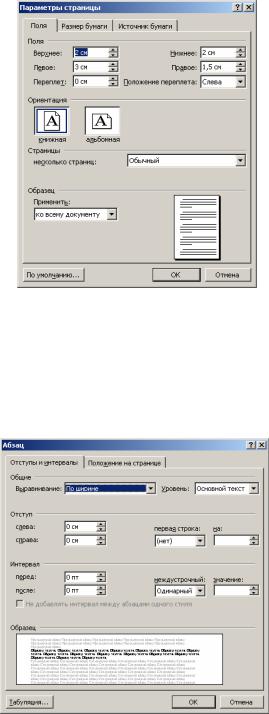 –2 см; нижнее– 2 см; левое – 3,0 см; правое – 1,5 см). Установить поля страницы можноследующимобразом: менюФайл→Параметрыстраницы(рис. 1).