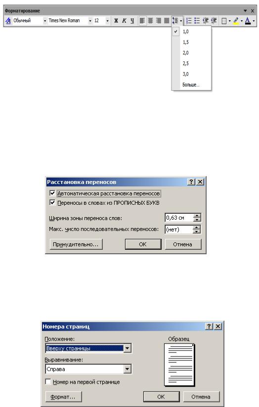 или на панели инструментов Форматирование нажать кнопку Междустроч-