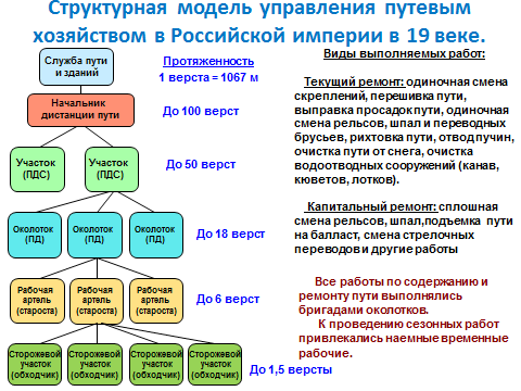 Рисунок 1.3 Структурная модель управления путевым хозяйством в 19 веке