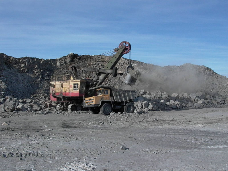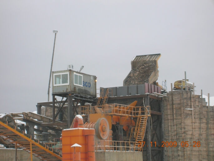 Горная порода полученная путём взрыва, доведённая до кандиции с помощью гидробутобоя, перевозится на участок дробления;