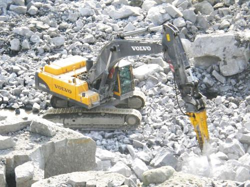 Дробление породы после взрыва гидробутобоем