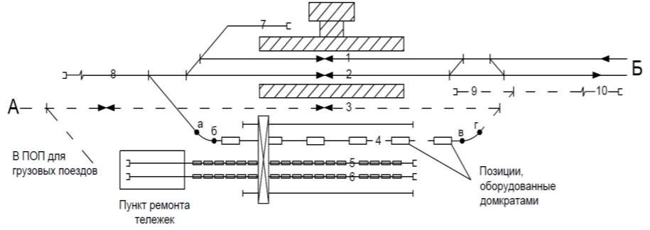 Схема путевого развития пункта смены тележек пассажирских вагонов