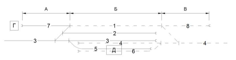 путей колеи 1435 мм; Г – электролебедка с бесконечным замкнутым тросом; Д –