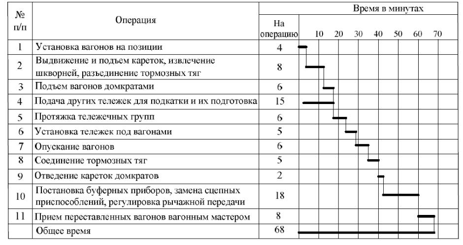 График технологических операций по перестановке вагонов на тележки колеи 1435 мм
