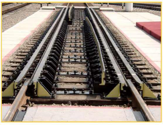 Данные устройства позволяют передавать вагоны с одной колеи на другую после изменения ширины колеи колесных пар за счет сдвижки-раздвижки их колес.