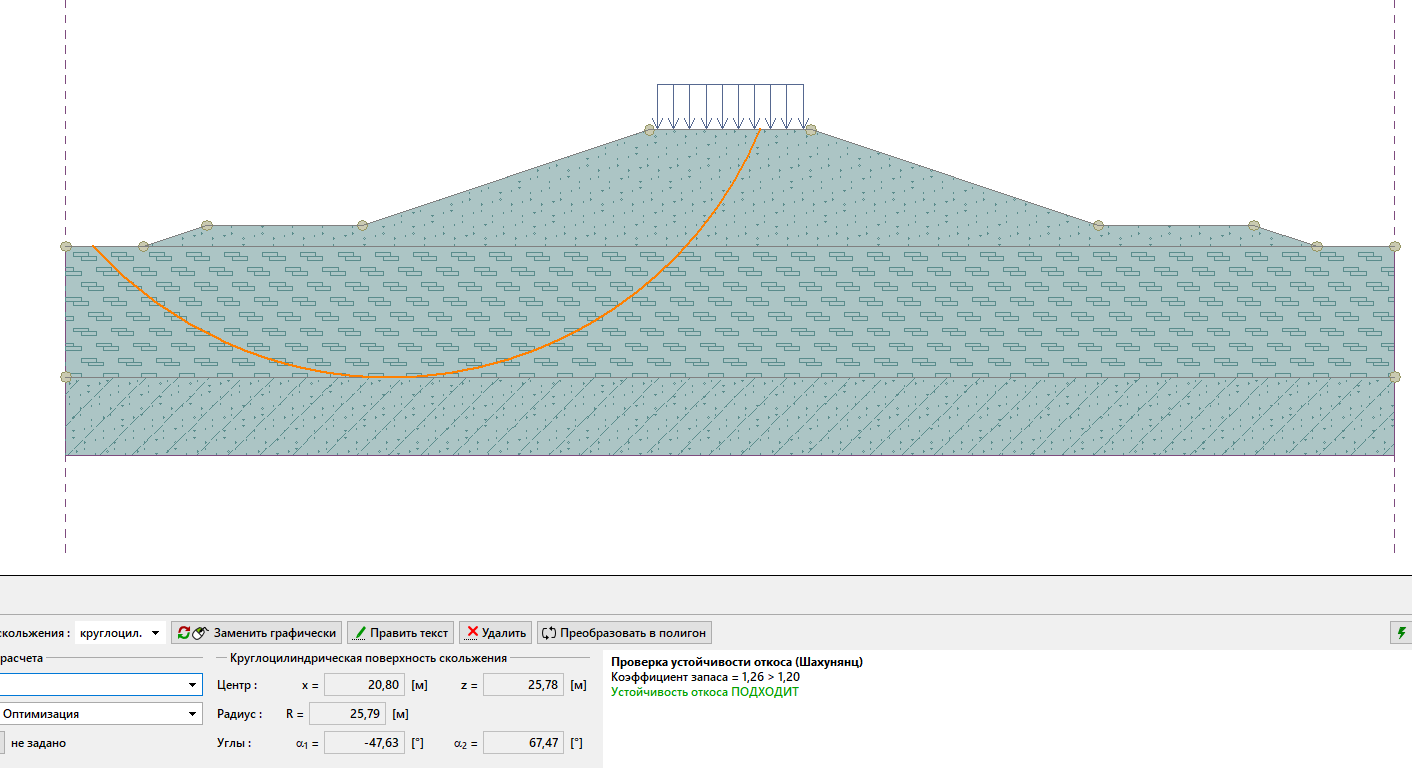 Рис. 2. Расчет осадки графоаналитическим способом, полученной в программном комплексе GEO5