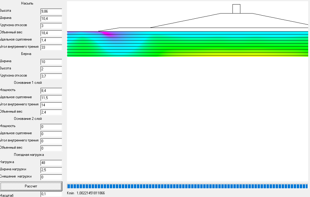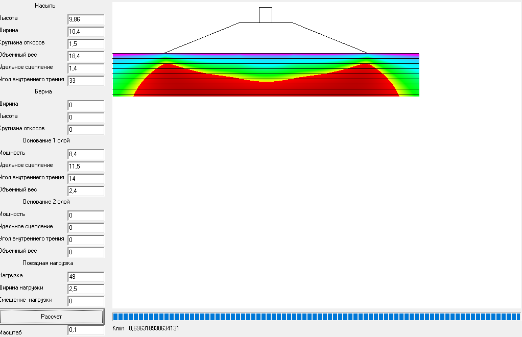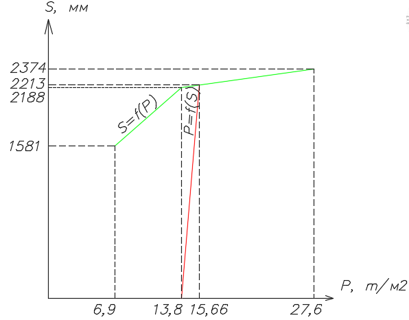 Рис. 1. Расчет осадки графоаналитическим способом, полученной расчетом
