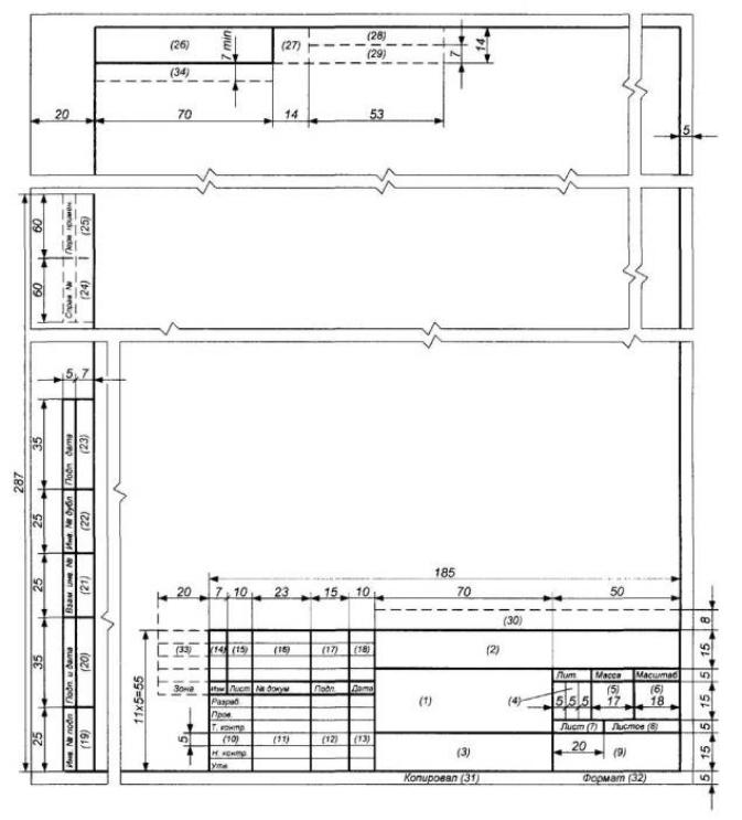 Для оформления чертежно-конструкторской документации предусмотрено три формы основных надписей: