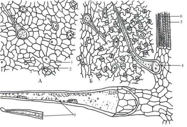 Рис. 3. Микроскопия листа душицы обыкновенной: