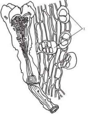 3. Проведите микроскопический анализ сырья. Пользуясь Приложением, изучите основные микроскопические признаки, и обозначьте их на рис. 2.
