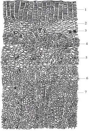 Рис. 7. Микроскопия поперечного среза коры дуба: