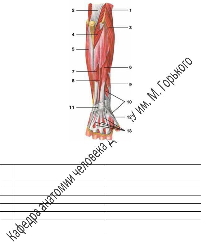 10.Впишите в предложенную таблицу границы борозд предплечья