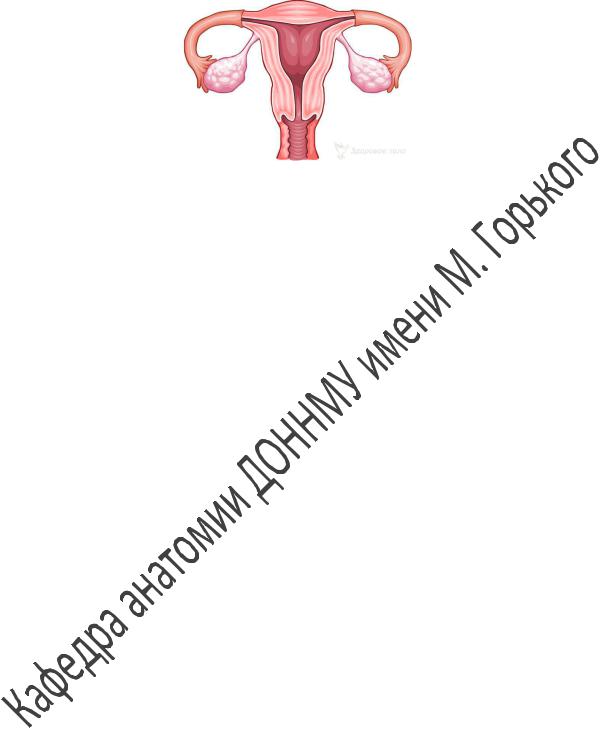 Обозначьте на предложенном рисунке части маточной трубы, части матки, полость матки, канал шейки матки, слои стенки матки.