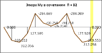 0.125 * 324.9 * 3.3 * (3.3 - 1.8)^2 = 302 кНм.2= 0.125 * *a1 * (a1-a3)2 =