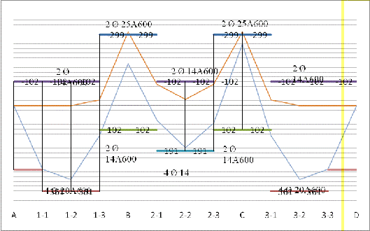 Неразрезной ригель с обычной арматурой необходимо рассчитать только на прочность. Ригели рассчитываются как неразрезные балки с учетом перераспределения усилий вследствие проявления пластических деформаций (неразрезность обеспечивается жестким сопряжением сборного ригеля с колоннами).