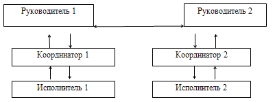 Линейный вариант предполагает строгую вертикальную иерархию в управлении (рис. 1), которая существенно удлиняет путь от одного исполнителя к другому, но практически нейтрализует проблемы подчиненности.