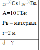 защитного материала, обеспечивающую на заданном расстоянии (r) от источника 55137Cs+56137Ва
