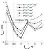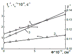 Исследования изменений основных параметров мощных транзисторных структур при электронном облучении показали - рисунке 16, что в диапазоне Фе=1010÷1013см-2 зависимости обратных значений трех параметров от флюенса электронов аппроксимируются линейными функциями: