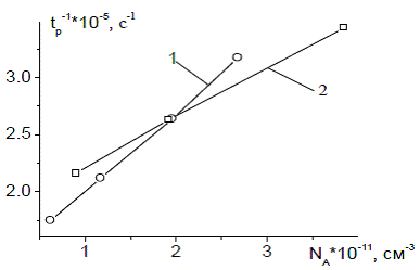 (NA) при облучении транзисторных структур электронами (1) или гамма-квантами