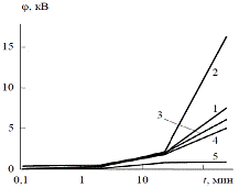 времени облучения потенциала поверхности эпоксидного образца: 1 -
