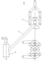 1 –вертикальная рама газоотводов; 2- наклонный газоотвод; 3- пылеуловитель