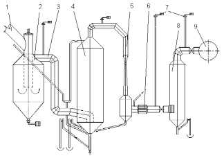 1-доменная печь; 2-пылеуловитель; 3-скруббер; 4-труба-распылитель; 5-электрофильтр; 6-отсекающее устройство; 7-дроссельная группа; 8-газорасширительная турбина; 9-генератор;