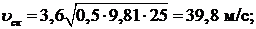 Условие не выполняется, следовательно, установим ограничение скорости автоцистерны на повороте. Для этого приравняем удерживающий и опрокидывающий моменты и пересчитаем скорость поворота