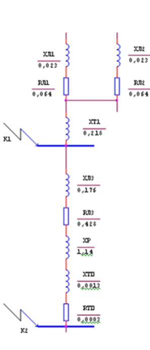 Рис. 2. Расчётная схема участка схемы электроснабжения.