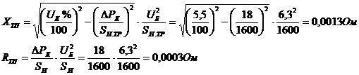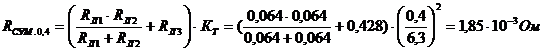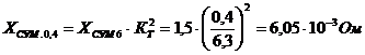 Приведём сопротивления системы электроснабжения к напряжению 0,4кВ
