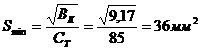 где СТ=85 - коэффициент, зависящий от допустимой температуры при К.З. и материала проводника;