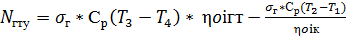 внутренние относительные КПД газовой турбины - ηoiгт=0,88, ηoiпт=0,78, ηoiк=0,85;