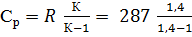 Где коэффициенты m = (К-1)/К=(1,4-1)/1,4=0,286;