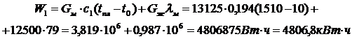 w1 - удельная энергия, необходимая для нагрева и расплавления 1кг стального лома, Вт·ч/кг;