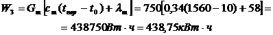 W3 - энергия для нагрева, расплавления и перегрева шлака, Вт·ч, кВт·ч;