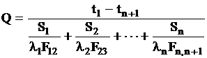 где F12, F23,…, Fn,n+1 - расчетные поверхности слоев стенки, м2;