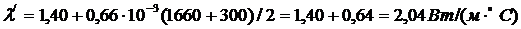 Температуру внутренней поверхности кладки принимаем равной t1=16600С. Температурой внешней поверхности кладки задаемся в первом приближении t/2=3000С и для этих условий определяем коэффициент теплопроводности: