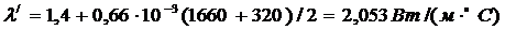Для среднего участка стены при толщине кладки 380мм задаемся температурой кожуха t/2 = 3200С и определяем коэффициент теплопроводности: