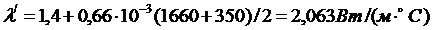 0,36·10-3(1000+200)/2 = 0,5 + 0,216 = 0,716 Вт/(м·0С).