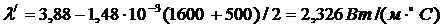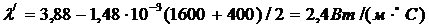 7,6·10-3(1600+1000)/2 = 13,8 - 9,9 = 3,9 Вт/(м·0С);